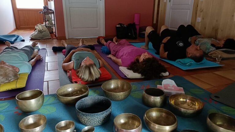 Peu à peu, les sons purs des bols tibétains, composés des 7 métaux reliés aux 7 chakras, résonnent au cœur de chaque cellule, éveillant un sentiment d’harmonie, de sérénité et d’unité.